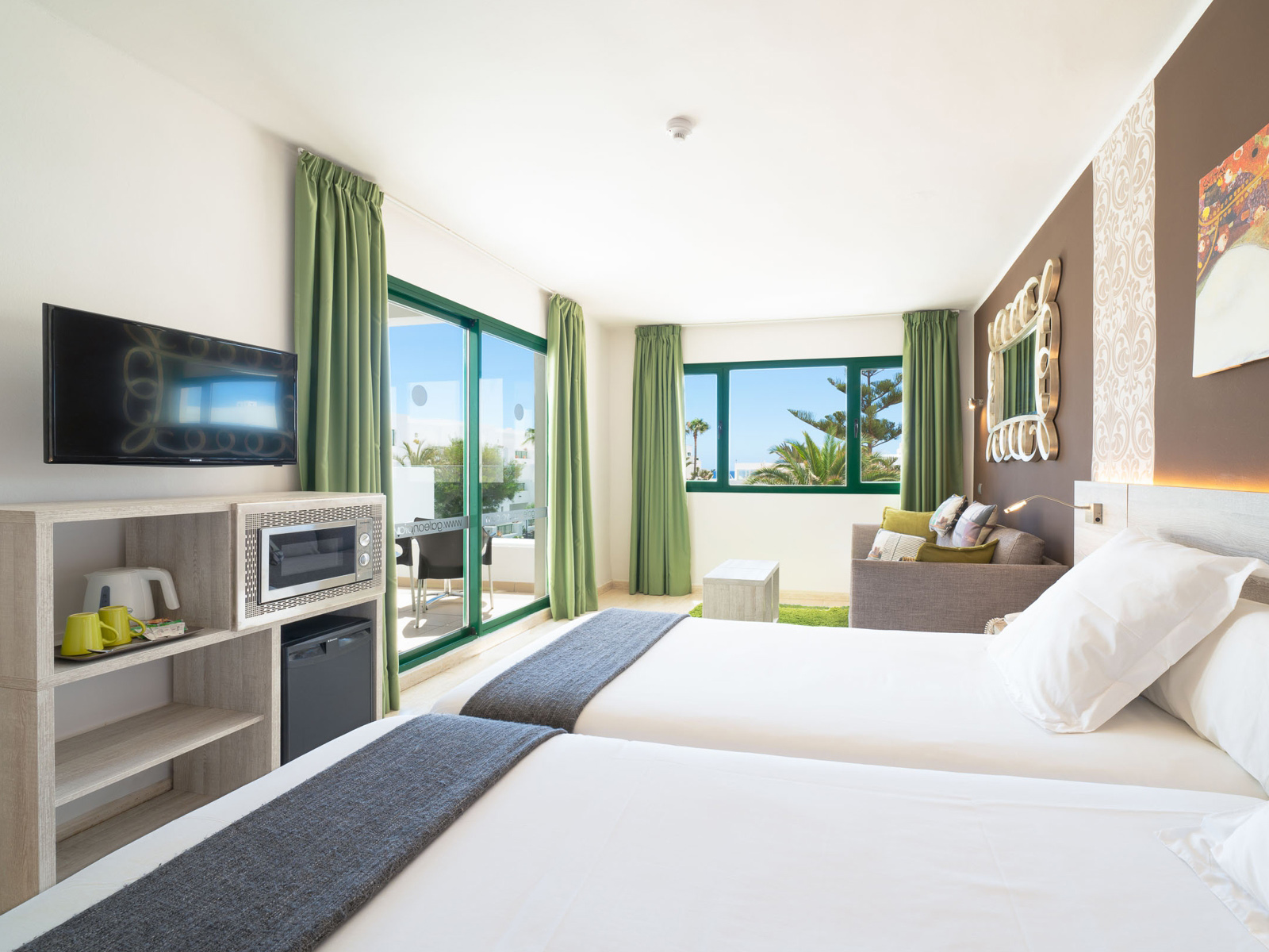 Galeón Playa es un complejo de apartamentos y suites en Costa Teguise, Lanzarote, especializado en familias y situado en primera línea de mar, entre las galardonadas playas de Las Cucharas y El Jablillo. Su espíritu familiar se refleja en la amplia gama de instalaciones y actividades diseñadas para pequeños y adultos, desde piscinas infantiles y club de animación con la mascota “Galy” hasta zonas de juegos y amplios apartamentos con vistas al Atlántico, creando el entorno perfecto para unas vacaciones al sol memorables.
